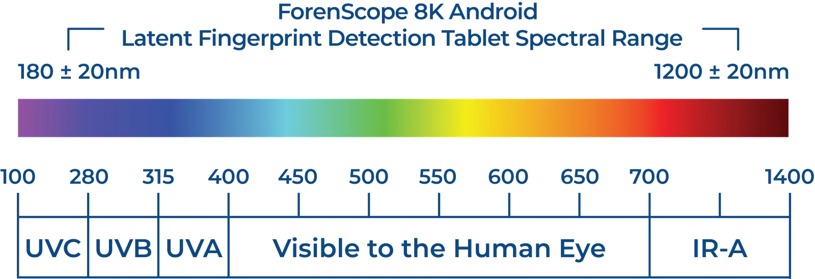 The 8K Android system allows you to scan crime scenes from up to 3 meters away. This capability lets forensic experts detect fingerprints on any surface from a distance, ensuring thorough and efficient investigations.